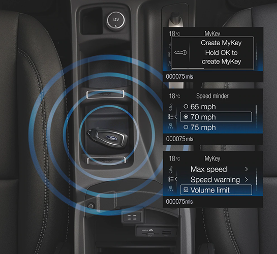 Ford MyKey® Comparte tu coche sin preocupaciones con MyKey® Esta tecnología te permite seleccionar el límite máximo de velocidad, crear un recordatorio para…